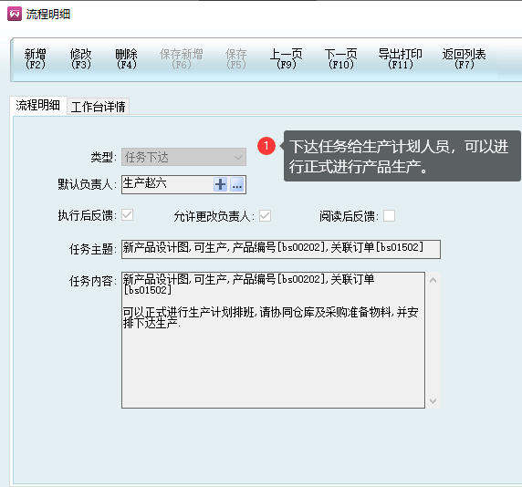 2.3在工作臺詳情里,可以詳細的看到當前工作的內容進度和詳情說明