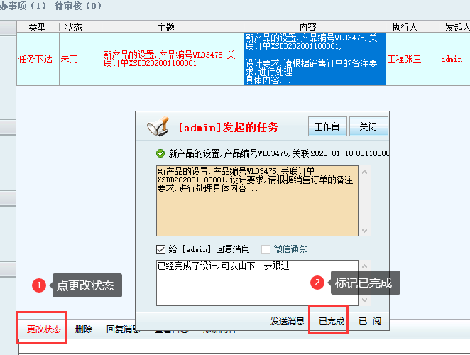 3.3,將任務標記執行完成,并反饋信息