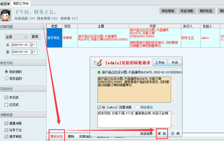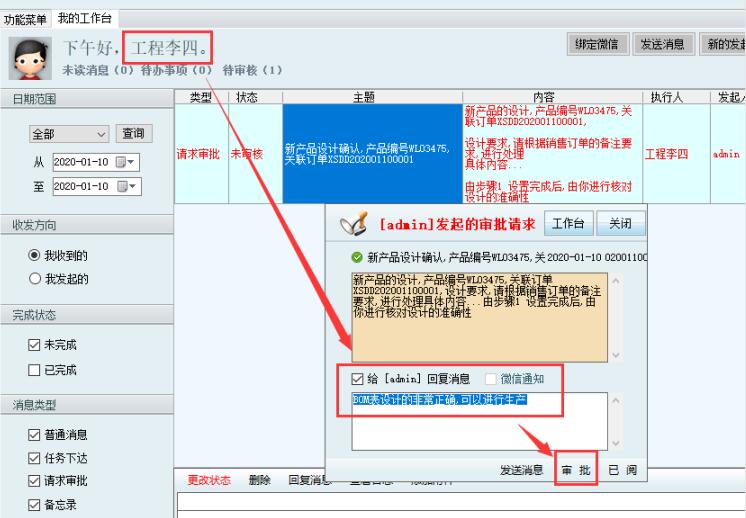 5.2,確認完后,執行消息審批消息,并反饋相應的內容給相關人員。