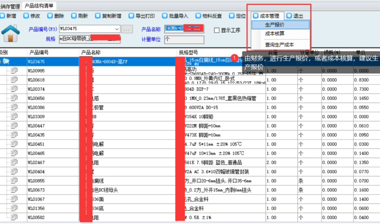 5.1,財務收到審批通知,并做生產報價(在產品結構清單,成品管理,生產報價)