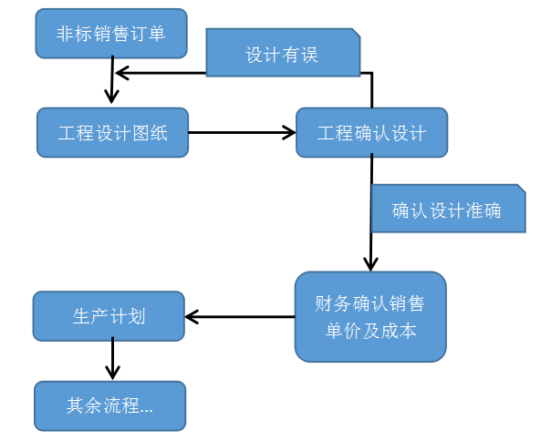 非標銷售訂單…>工程-工程確認…>報價…>財務確認…>生產計劃…>物料采購…>加工單…>驗收…>入庫…>銷售發貨