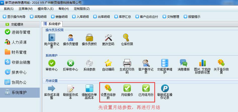 系統維護—設置月結參數—月結操作—查看已月結月份