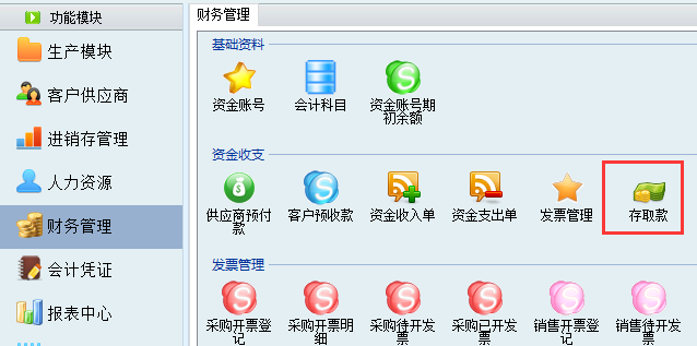 1、財務管理-存取款,這個功能,一般是用于把一個資金賬號的金額轉到另一個資金賬號中(并不是實現銀行卡轉賬,如果需要銀行卡轉賬,請用網銀或者去銀行),以下是操作方法,打開存取款這個功能