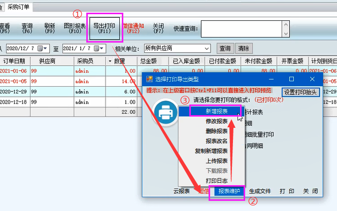 導出打印——報表維護——新增報表