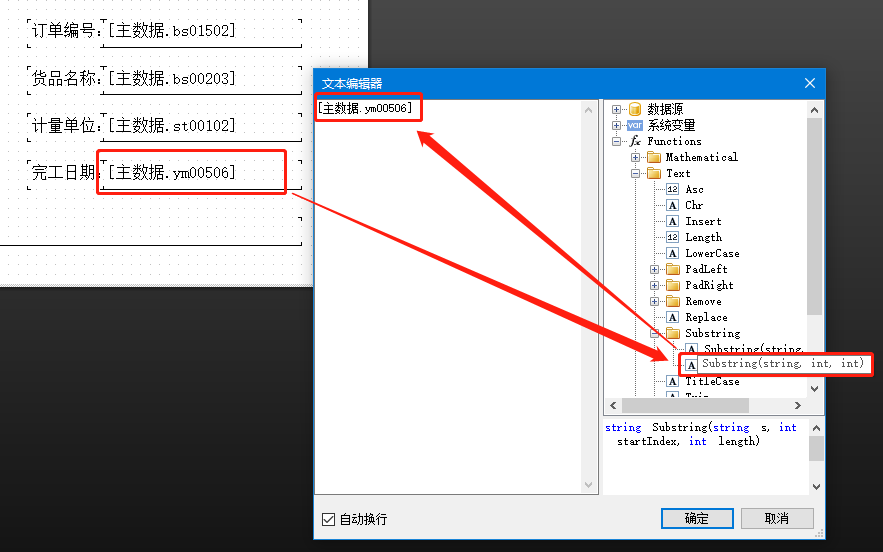 第一種方法:雙擊打開日期字段的文本框,復制 [Substring(字段,0,10)] 這個函數(shù),將原來的字段替換到函數(shù)里。