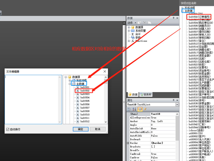 第一種:在修改報表界面的右邊,根據字段備注找到對應的字段。