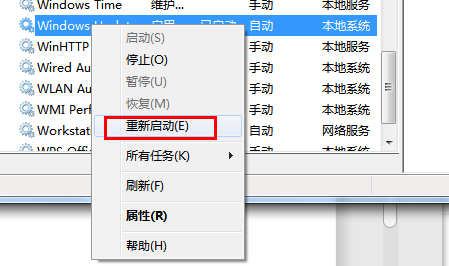 4.再右鍵windows update,重新啟動