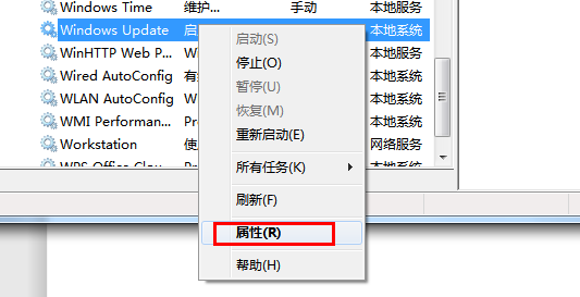 3.往下拉找到windows update,右鍵——屬性——啟動類型改為自動——確定