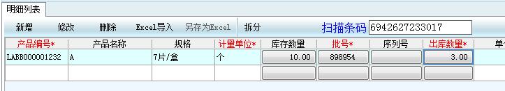 與上述入庫操作基本相同,使用 銷售訂單/其他出庫 功能出庫,掃碼后商品會自動帶出明細列表中。