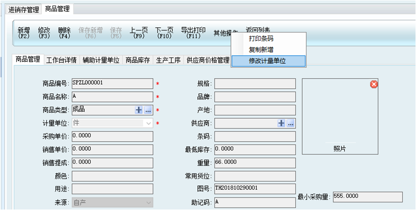 修改商品的計量單位,報錯?