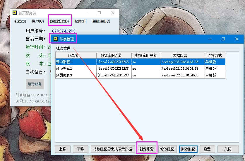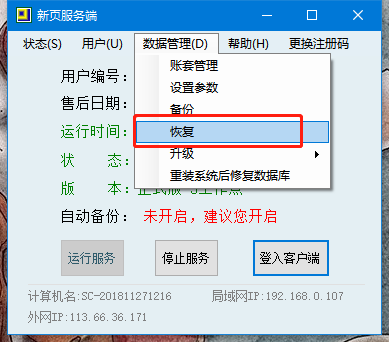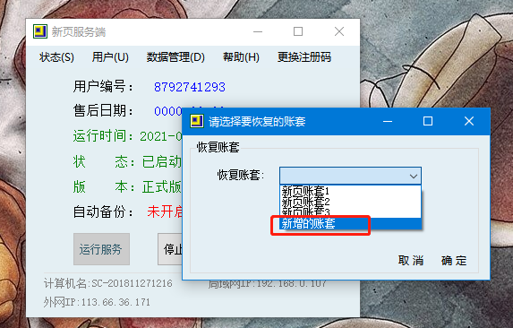 備份完成后,在新增的空白賬套中恢復(fù)這個(gè)賬套的備份。
