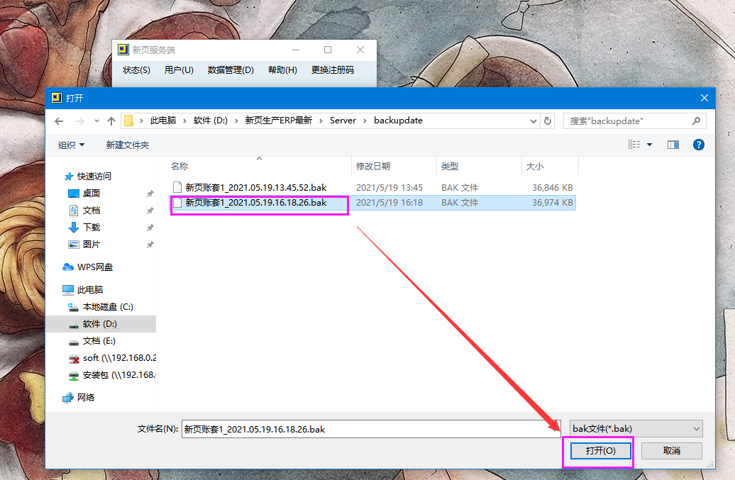找到剛才的備份數(shù)據(jù)文件,然后點(diǎn)擊打開