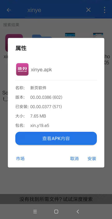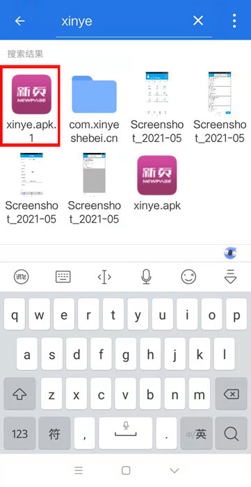 方法2:在手機自帶的文件管理功能里,搜索“xinye”,搜尋剛才在微信里的apk文件。