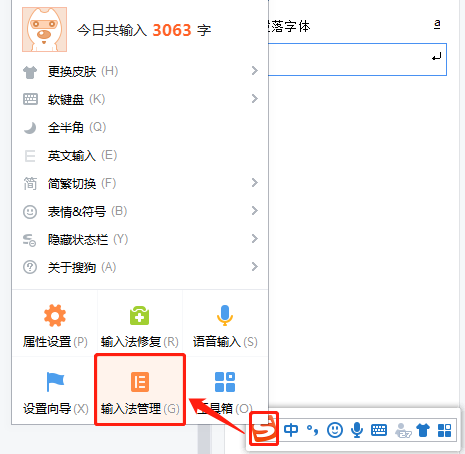 右鍵點擊搜狗圖標——選擇輸入法管理