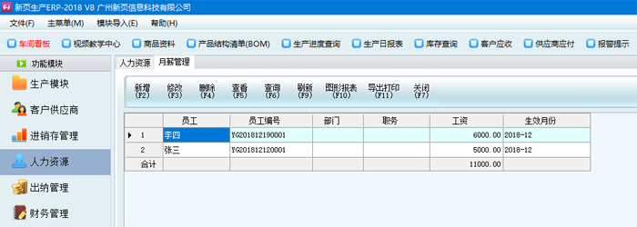 2、人力資源-月薪管理,設置好每個員工的底薪