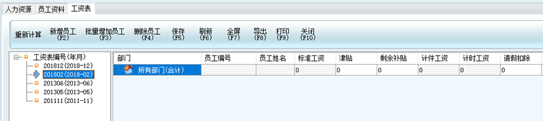 PS:有些用戶反映,明明已經添加員工工資表,再次進入工資表,選擇工資編號以后,仍然沒有看到已添加的員工工資表,這是因為錄入員工資料時,沒有給員工選擇部門,當選擇了部門之后,工資表就能顯示了。