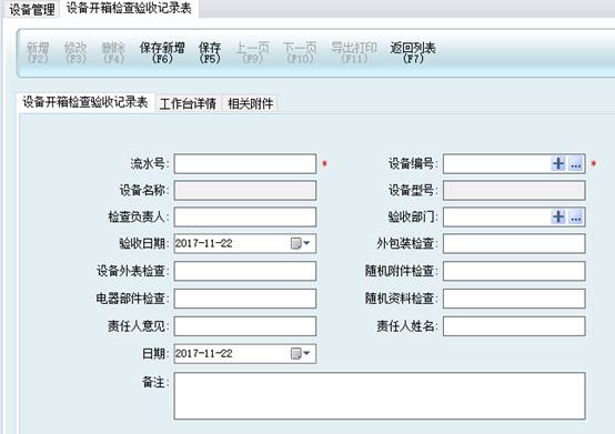 4)附屬設(shè)備清單:根據(jù)設(shè)備編號(hào)記錄與設(shè)備配套使用的附屬設(shè)備;