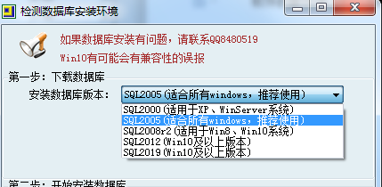 軟件的服務端上默認集成了以下幾個版本的數據庫。為了提高安裝和維護的效率。我們默認建議下載使用SQL2005版本。