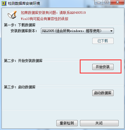 如果提示已下載,那說明軟件的安裝目錄下已有數據庫的安裝程序,直接點擊開始安裝