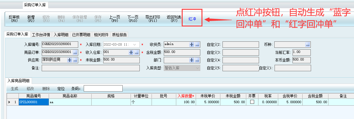 3、生成紅沖單后,暫估入庫單據不能再反審核修改刪除
