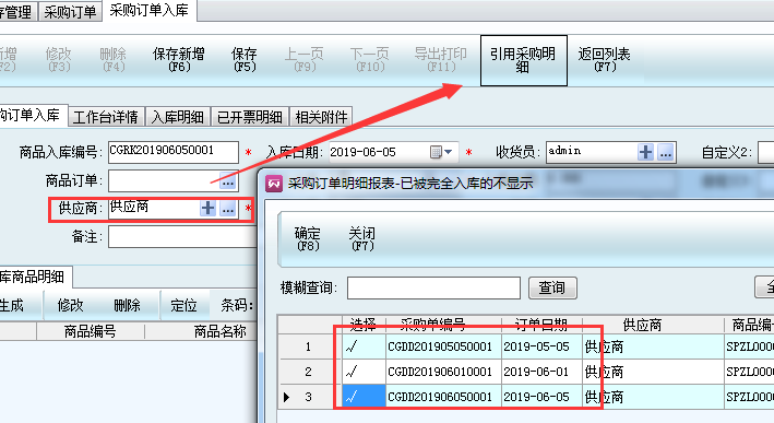 選擇供應商—引用采購明細—批量選擇采購訂單—保存審核