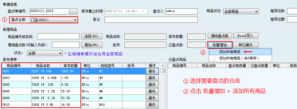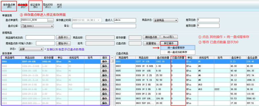 * 盤點后的單據無法修改、刪除。