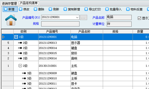 最多支持八級BOM;
