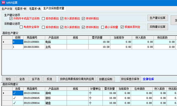 MRP運算可以根據生產計劃運算、也可以根據銷售訂單、產品進行運算。;
