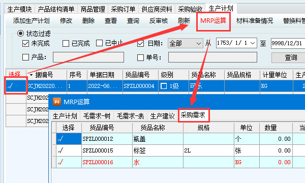 MRP運算可以根據生產計劃運算、也可以根據銷售訂單、產品進行運算。;